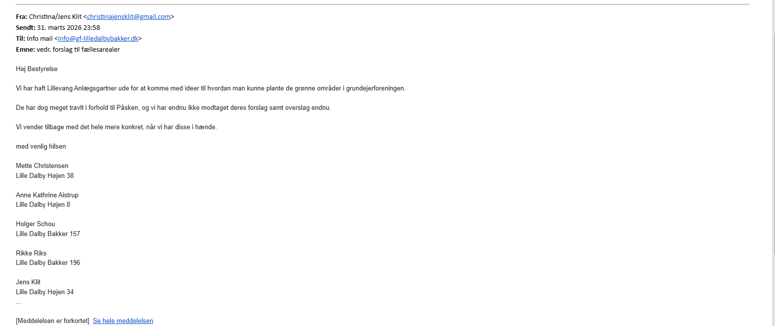 - #2 Forslag – Forslag til beplantning på fællesarealer (Jens Klint og udvalget)